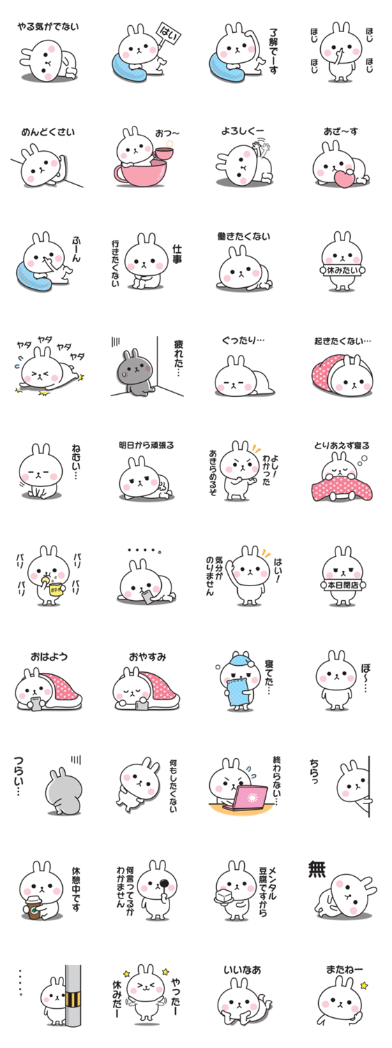 やる気が出ない時に使ううさぎさんのスタンプです。