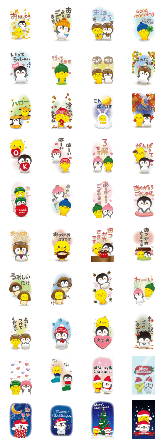 チビぺんとチビぴよ秋から冬のご挨拶。 ※このスタンプはトークルームで大きく表示されるBIGスタンプです。