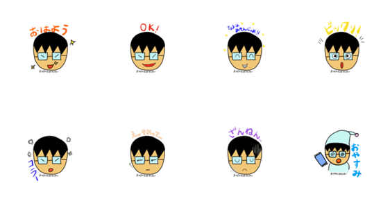 スタンプ説明 まつざかたつおせんせいは架空の人物です。