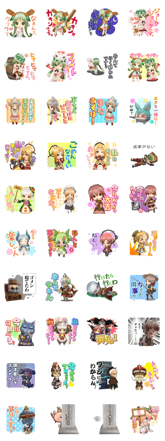 MMOアクションRPG「ぷちっとくろにくる」の、ファニーでキュートなキャラクターたちがゆる~くしゃべるスタンプですよぅ。