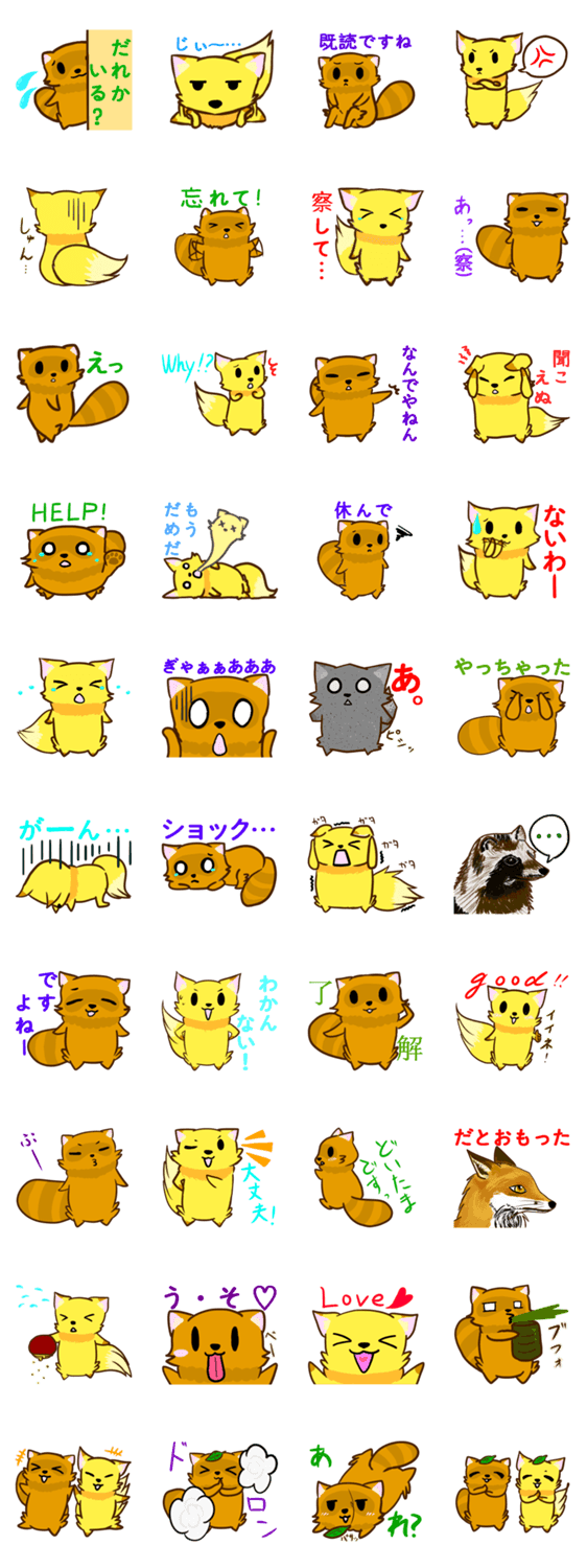 たぬたぬきつねバージョン2です。前作と同じようなゆるっとしたたぬきときつねのほか、ちょっとリアルになった2匹も入っております。