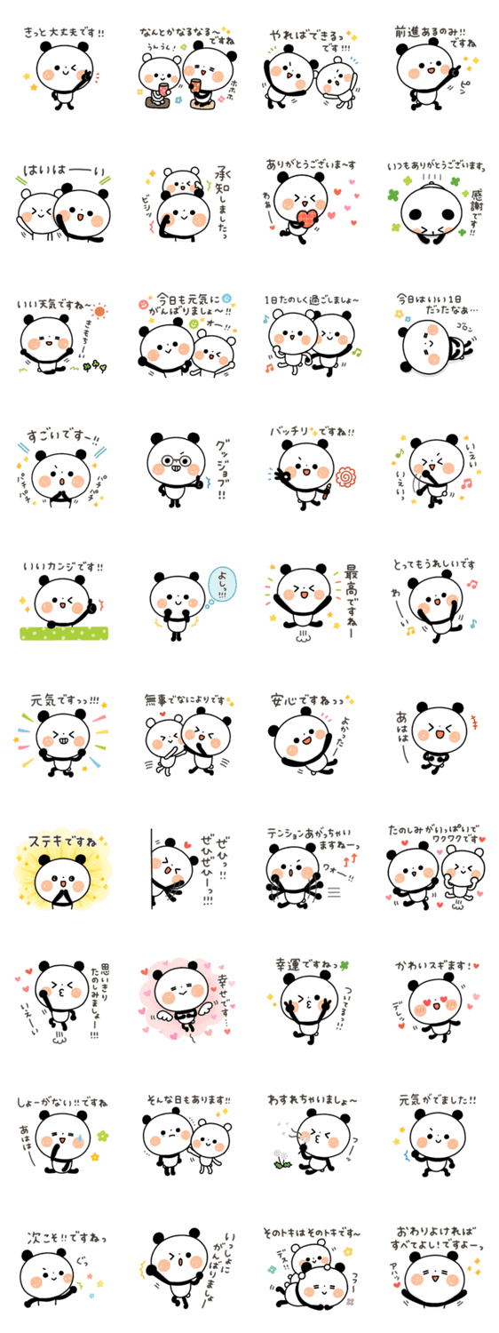 ちょこっと敬語のゆるパンダの、ポジティブで前向きな言葉が集まったスタンプです♪