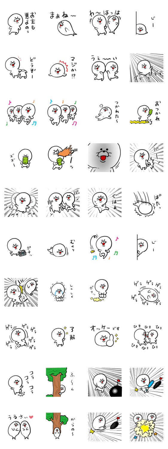 あざらしの楽しいスタンプです。組み合わせも自由自在。友達、家族、カップルのトークでお役立ちです。グループで使うときっと盛り上がるでしょう。