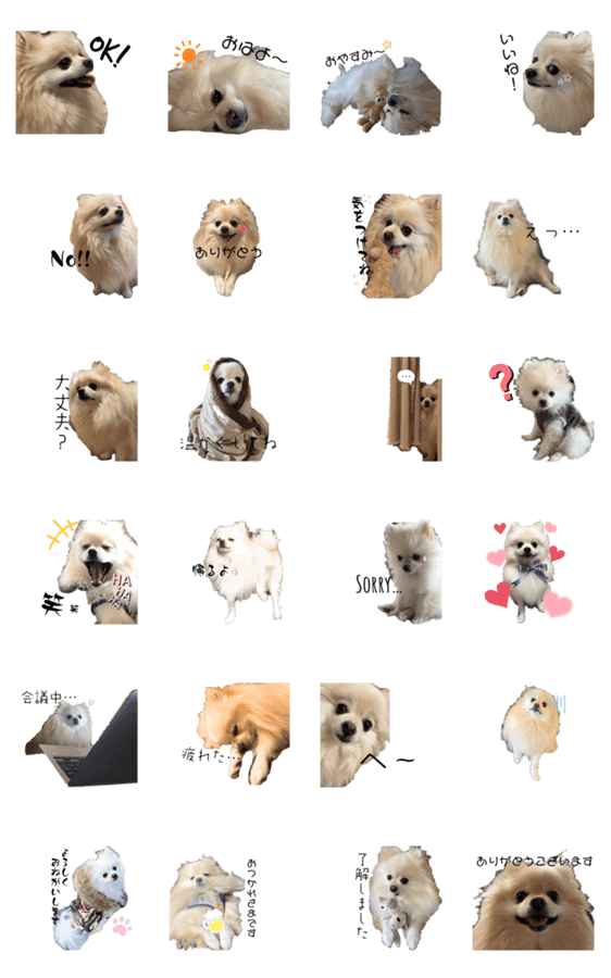 ポメラニアンのソルのスタンプ。日常で使いやすいスタンプです。