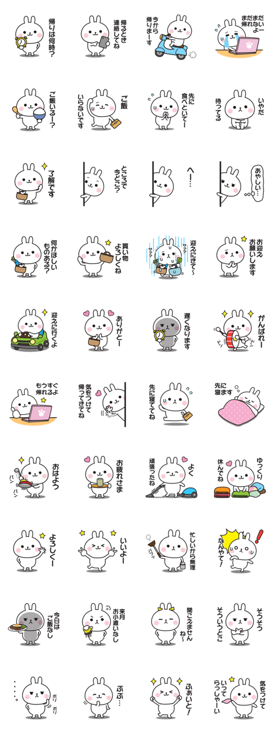 可愛いうさぎさんの家族の連絡用に使える言葉を集めたとっても使いやすいスタンプです。