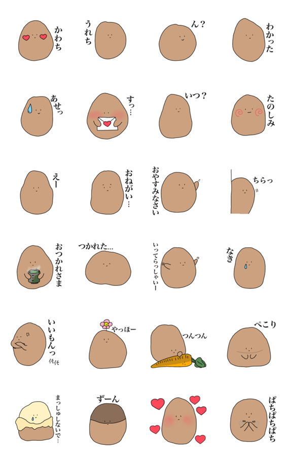 じゃがいもと仲間たちの便利で愉快なスタンプです。