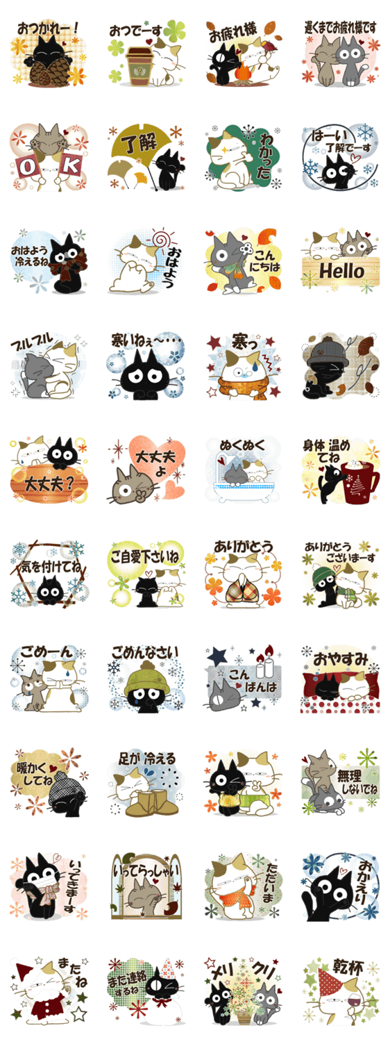 黒ねこちゃん達とみけさんのコラボ日常スタンプ 冬編です!