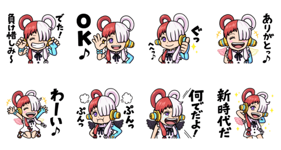 ONE PIECE FILM REDに登場するヒロインウタを、ロシヒ氏によって新規描き下ろし! 可愛らしいかつ使いやすいセリフでトークを盛り上げよう♫