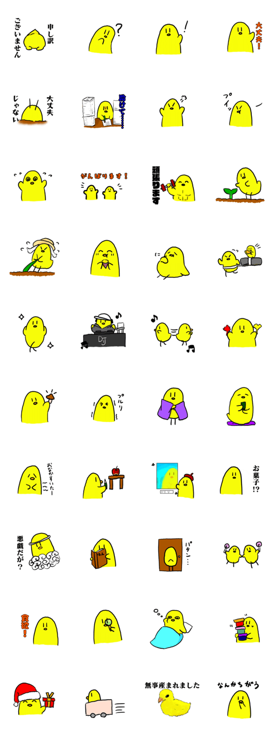 ひよこみたいなインコみたいなトリのラインスタンプです。
