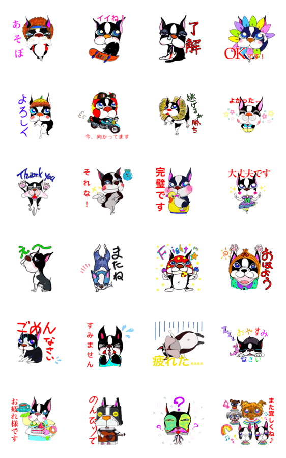 | スタンプ説明 | 楽しくお気楽な、ボストンテリアをモチーフにしました。 |