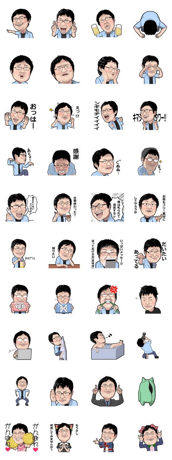 | スタンプ説明 | Mr. フリー素材。Creative Commons Zero (CC0) の男、柳 英俊(だるやなぎ)のスタンプがついに登場! |