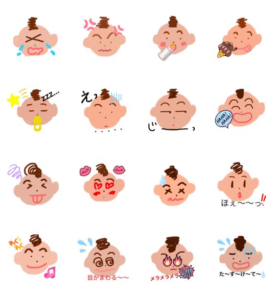 赤ちゃんの面白い表情や気持ちを表したスタンプです