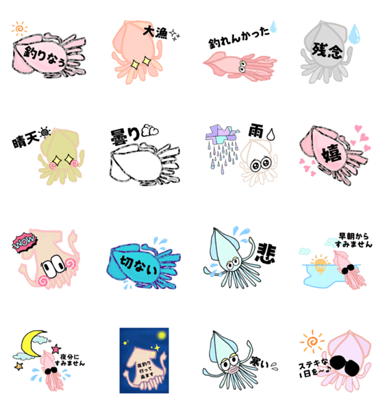 | スタンプ説明 | イカくんPart②★釣り活編★happyart★釣り活してるイカくんの会話 |