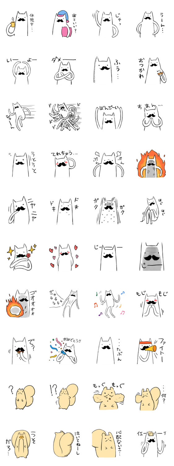 ヒゲのついた白い社長さんと部下のヒゲリスのスタンプ。