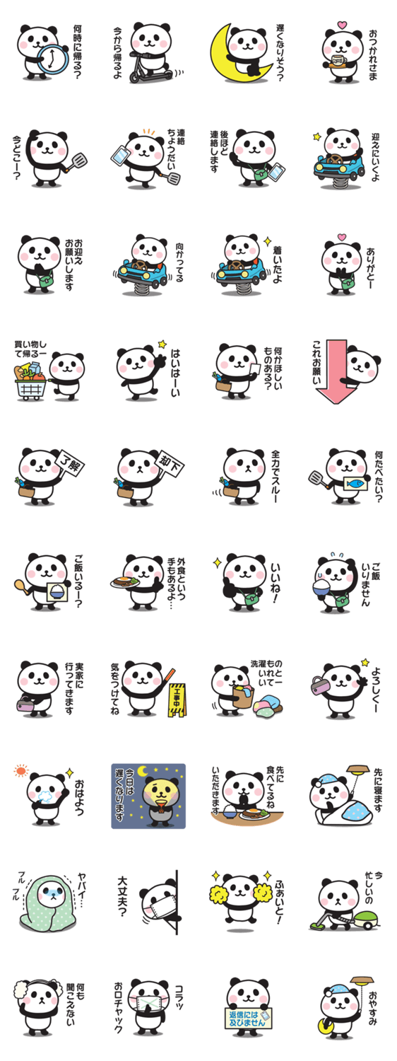 ぱんだの家族の連絡用に使える言葉を集めたとっても使いやすいスタンプの第三弾です♪