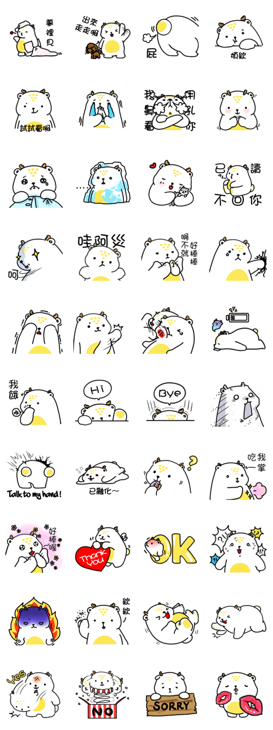 | スタンプ説明 | This is DearDeerBear. A little chubby white bear with antlers.Hearts-shaped dapple on the forehead and the tail.My dears, we want to warm your heart. |