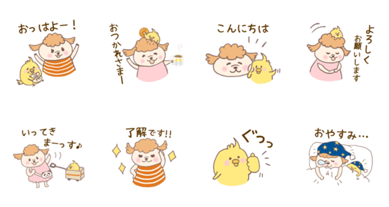 トイプーモコとぴよまるのほんわか日常スタンプ。 毎日使えて便利な8個セット。 仲良しのモコとぴよまるが、毎日の挨拶を可愛くお届け❤︎