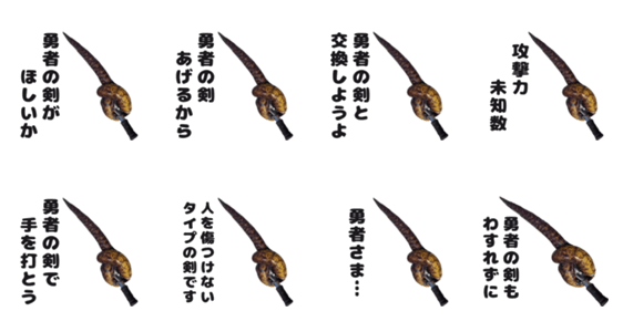 スタンプ説明 勇者の剣 ウツボ製。ちょっと弱気な剣です。
