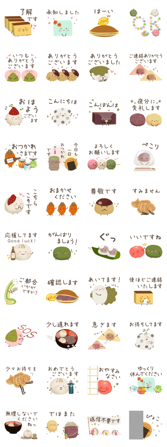 ゆるい和菓子たちの日常で使えるスタンプ第2弾です。敬語が多いのでママ友、お仕事、PTAなどでも使いやすいです♪