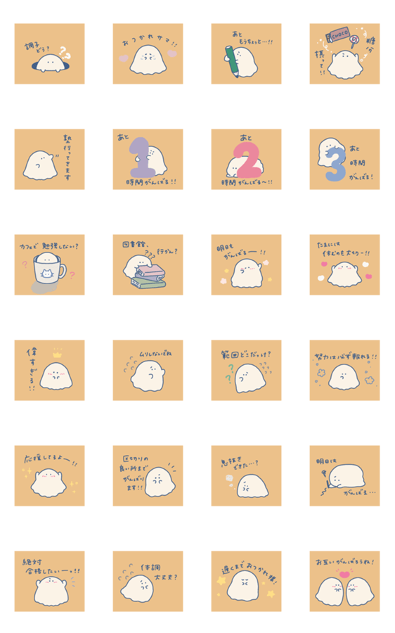 小さなゆるいおばけが、あなたのお勉強を見守ります。勉強を日々頑張っているあなたへ届きますように。背景がついているので、使いやすいです◎(オレンジ・橙)