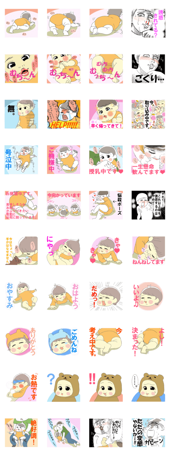 むちむち赤ちゃん「けいちゃん」のスタンプです。所々に母もおります。