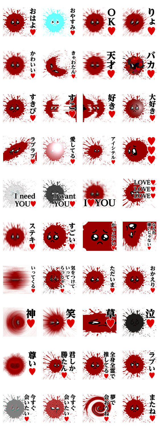 | スタンプ説明 | ぴえんMAX/ピエン/トマト/とまと/けちゃっぷ/ペンキ/絵の具/ラブラブ/大好き/毎日使える/使いやすい/挨拶/家族/カップル/恋人/彼氏/彼女/アベック |