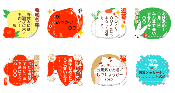 ご自由に書き込めるミニマルデザインの年賀e付箋です。新年の祝福と付箋として使えます。お友達、家族、ママ友、友人知人などにもプレゼントして 現在この商品は一部のスマートフォン版LINE 10.3.0以上のトークルームでのみ使用できます。動作環境の最新情報はヘルプをご確認ください。