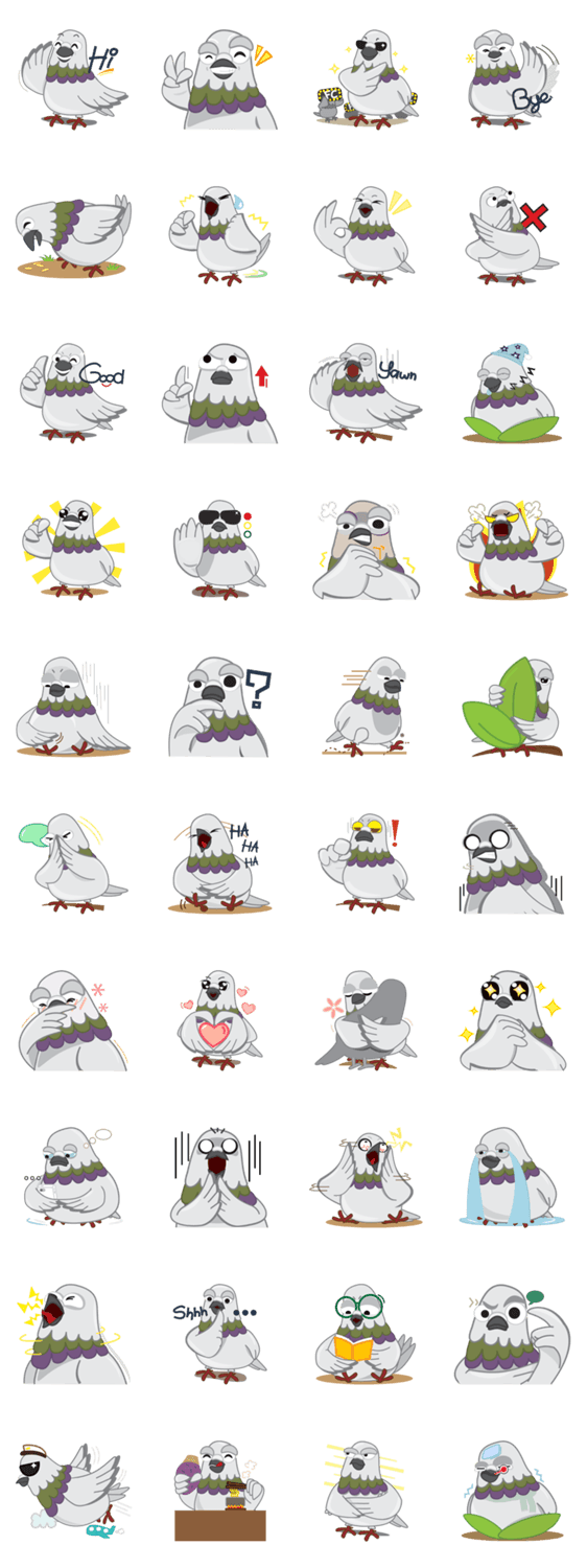 | スタンプ説明 | A sticker of pigeon's feelings. Hi! I'm a pigeon named Piraab,you can call me Nok-pi. Welcome to my world. Let's be a Pigeon,be ourselves and be happy together. |