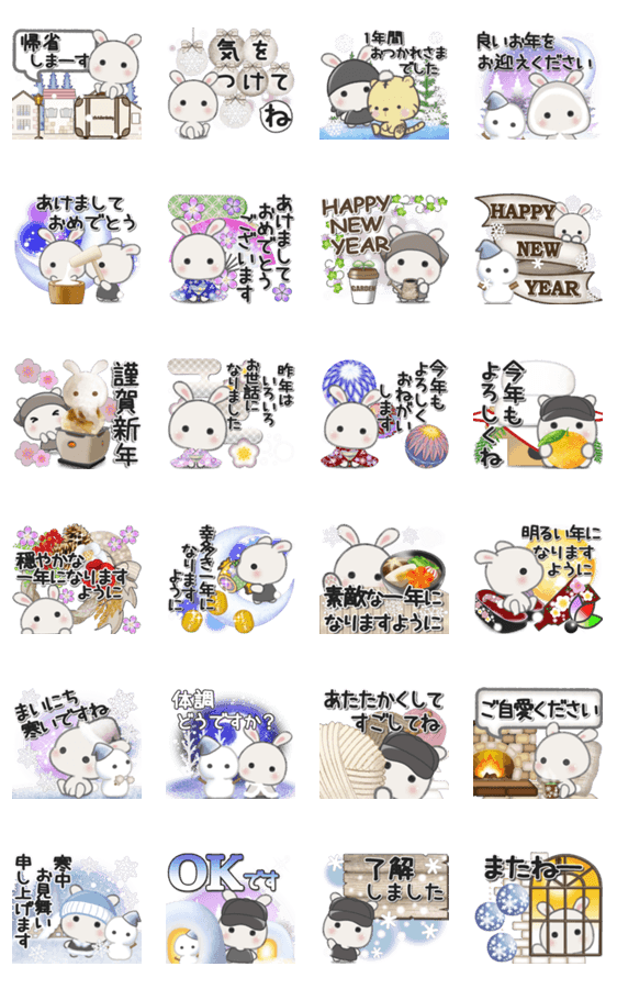 カフェうさぎの年末年始のスタンプです。 ちょっぴり華やかで、楽しく飛び出すスタンプで年末年始のあいさつをしませんか。※2023/1/3(火)23:59までに購入すると特典「LINEおみくじ」がもらえます。