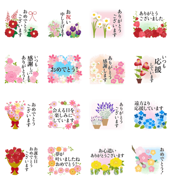 再販:花いっぱいのおめでとう&ありがとう -LINEスタンプマニア