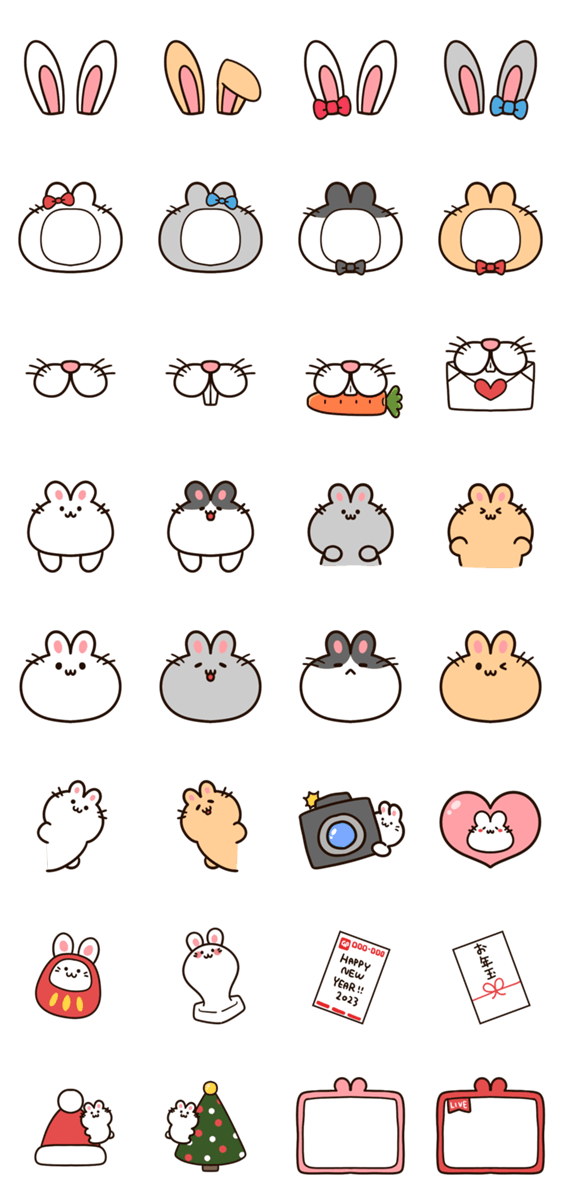 LINEの写真や動画に貼って使えるスタンプです。かわいいうさぎになったり、顔を隠したり、加工などご自由に♪お正月、クリスマスにもどうぞ♪動物/面白い/ネタ/卯年/年賀状