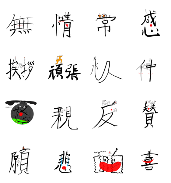 このLINEスタンプは生きている字とそこに住む人です。