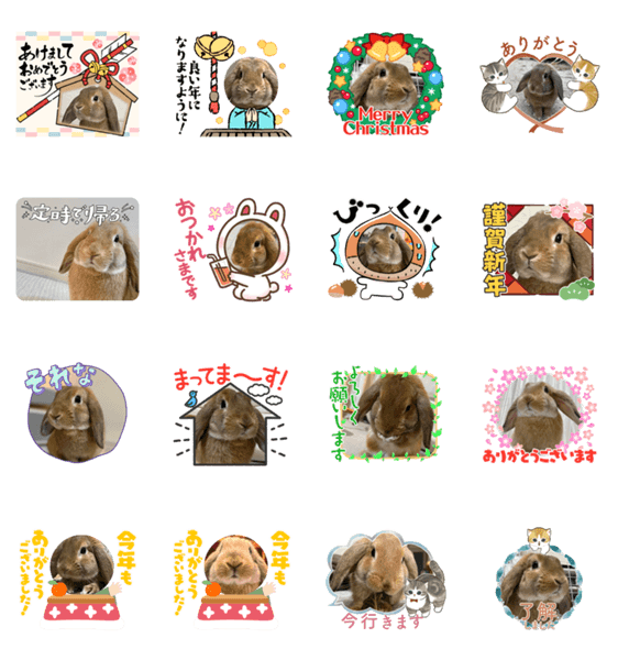 | スタンプ説明 | ホーランドロップのニコのうさぎスタンプです。クリスマス、新年の挨拶に。 |