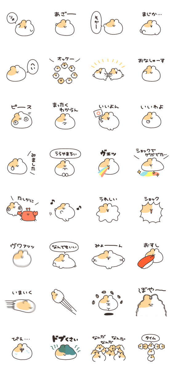 ゆるい返事をするハムスターのスタンプです。