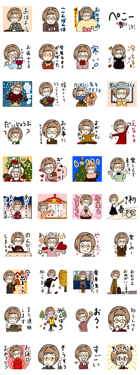 年末年始や寒い冬に使えるスタンプです。若々しいばあばの気持ちをスタンプで伝えてください。