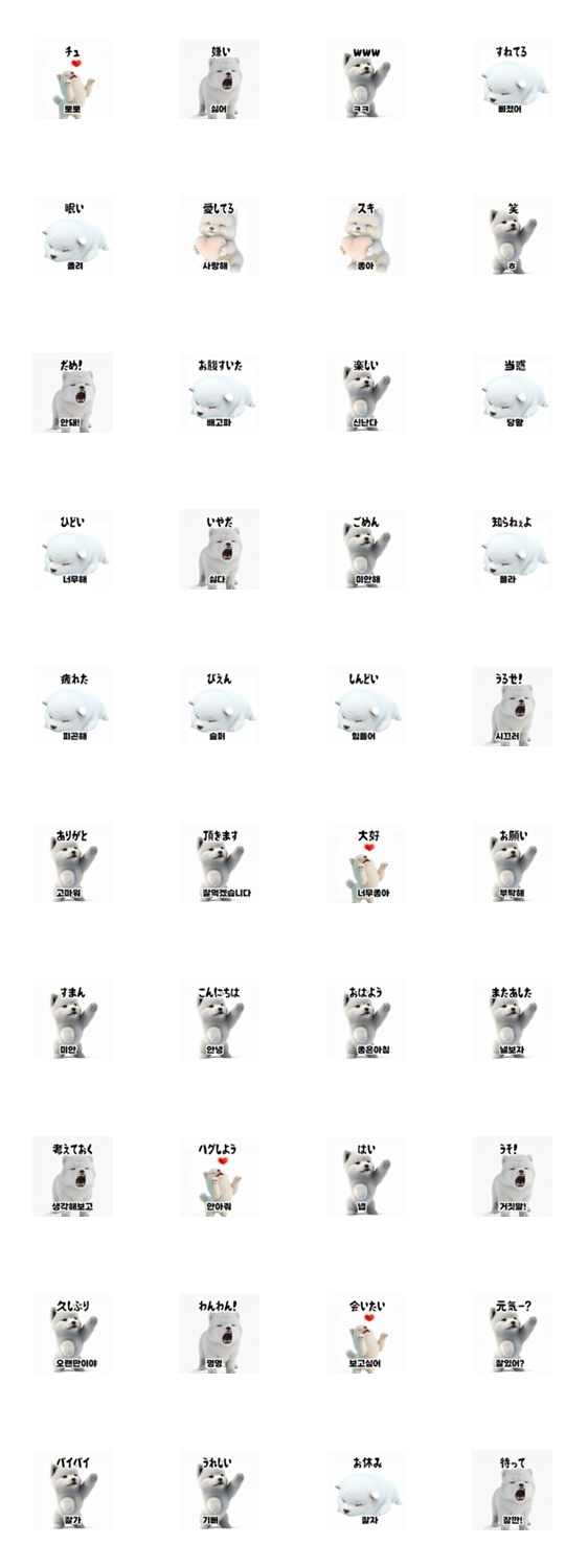 優しいかわいい白い北極毛桃のサモエード犬。 簡単な英語、中国語、タイ語、韓国語日常旅行の基礎会話学習。 ピンク色の赤いハート 愛、怒り、悲しみ、憎しみ 感情表現 yuN
