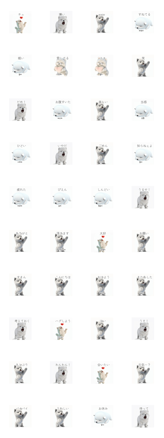 優しいかわいい白い北極毛桃のサモエード犬。 簡単な英語、中国語、タイ語、韓国語日常旅行の基礎会話学習。 ピンク色の赤いハート 愛、怒り、悲しみ、憎しみ 感情表現 oT6