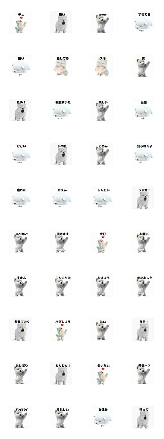 優しいかわいい白い北極毛桃のサモエード犬。 簡単な英語、中国語、タイ語、韓国語日常旅行の基礎会話学習。 ピンク色の赤いハート 愛、怒り、悲しみ、憎しみ 感情表現 6fJ