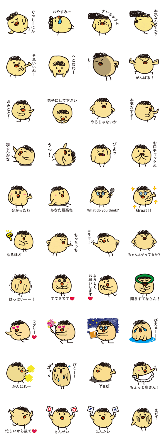 パンチひよこシリーズが帰ってきました。パンチパーマのかわいいひよこが日常会話をお手伝いします。友達や家族、みんなで使ってください。ゆるくて憎めない存在です。