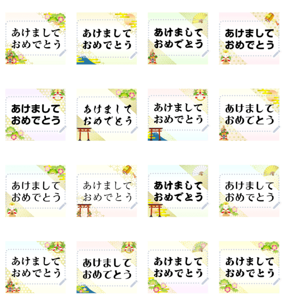 お正月用の日本風の絵柄です。新年のお祝いを縁起の良い絵と共に送れます。※2023/1/3(火)23:59までに購入すると特典「LINEおみくじ」がもらえます。 現在この商品は一部のスマートフォン版LINE 10.3.0以上のトークルームでのみ使用できます。動作環境の最新情報はヘルプをご確認ください。