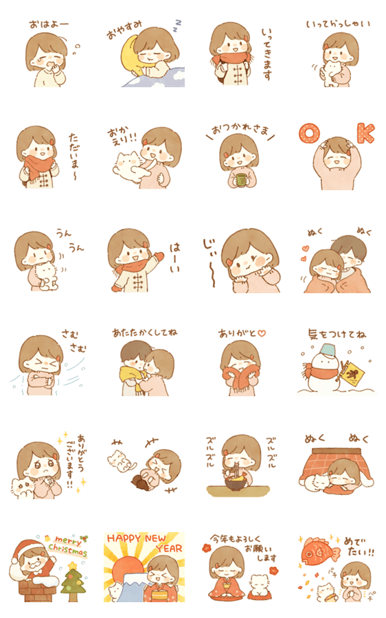 スタンプ説明 冬/季節/カップル/年末年始/彼女