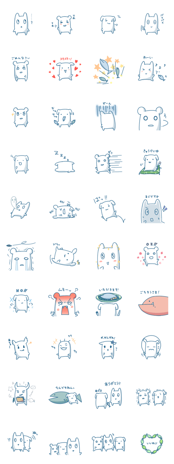 白くて小さい生きもののもちっこと、さかなたちのスタンプです!