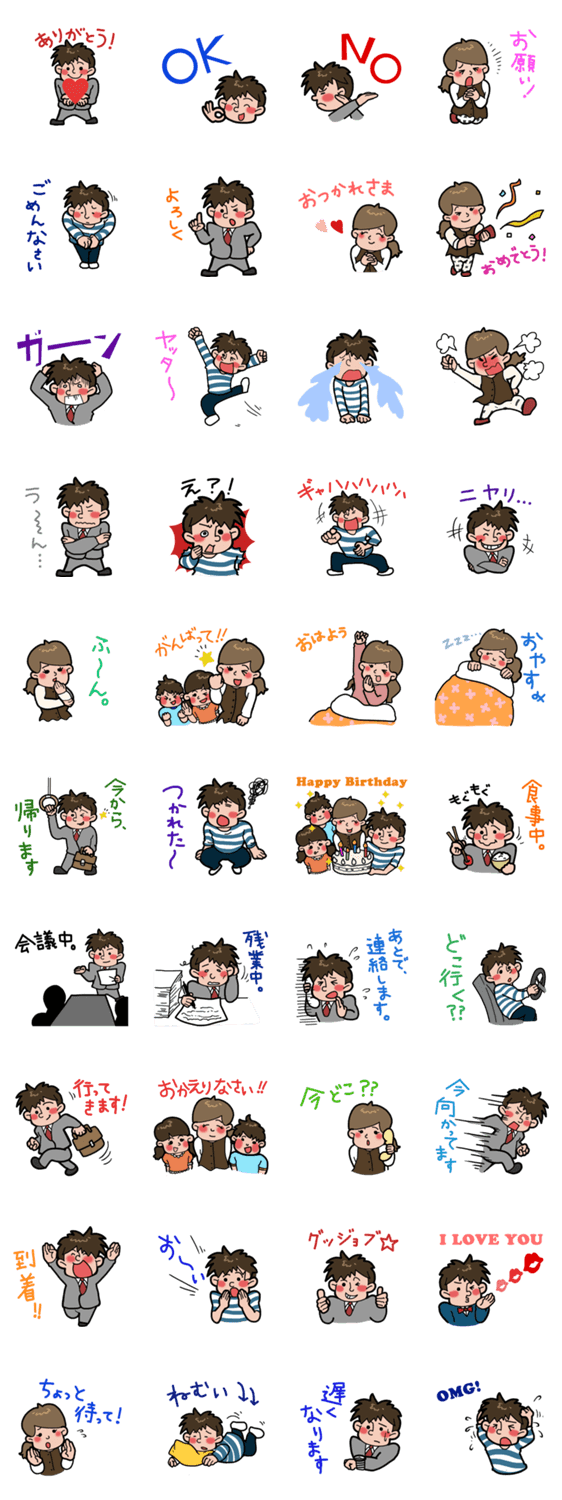 さまざまなシーンで使えるスタンプをご用意しました。パパと家族みんなでご利用ください!
