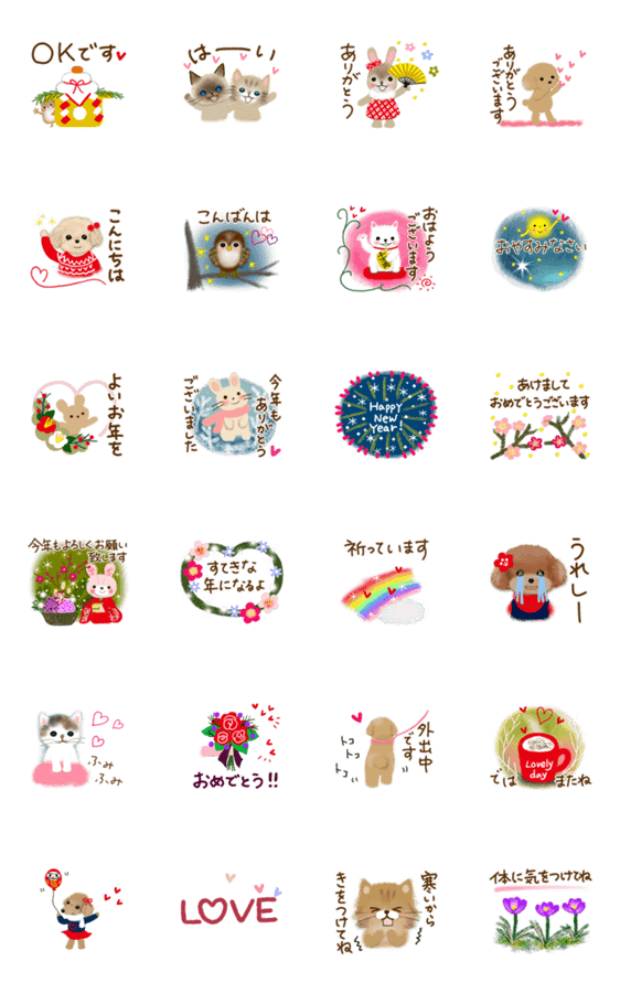 年末年始のスタンプも入っていますが、お正月あけにも、使いやすい絵柄が多いセットです♡