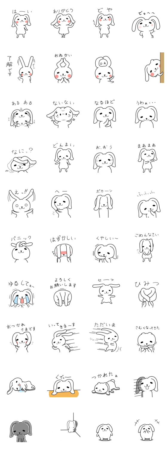耳のたれたうさぎのゆるく、かわいい???。うさぎの「うさたれ」のゆるいスタンプ