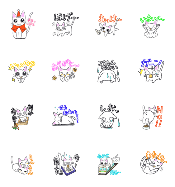 LINEスタンプメーカーでつくったスタンプです。あほっこムーにゃんというオリジナルの白ねこスタンプです。よく使う、あったらいいなと思うフレーズをご用意致しました。