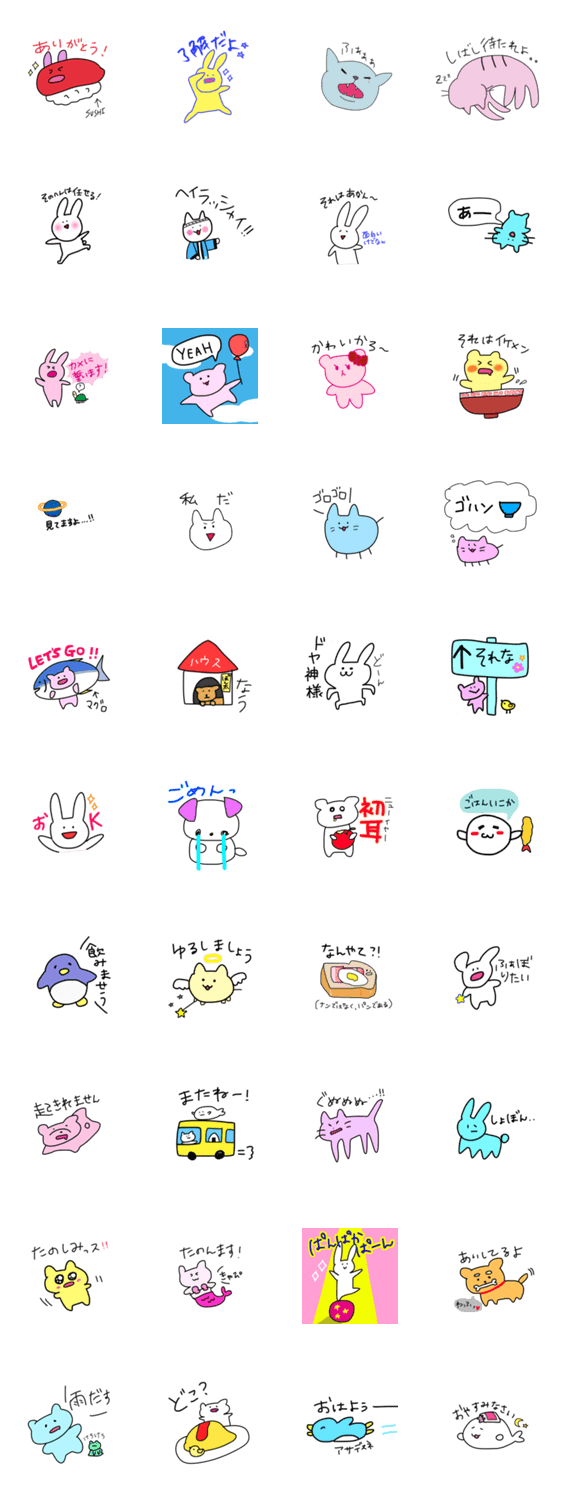 うさぎや猫などが、それとなく断ったり頼んだり、色々伝えてくれます。ゆるくてシュール、だけど使いやすいスタンプです。