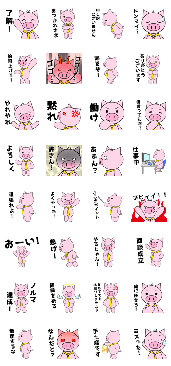 サラリーマン豚山(営業職10年目の会社員) -LINEスタンプマニア