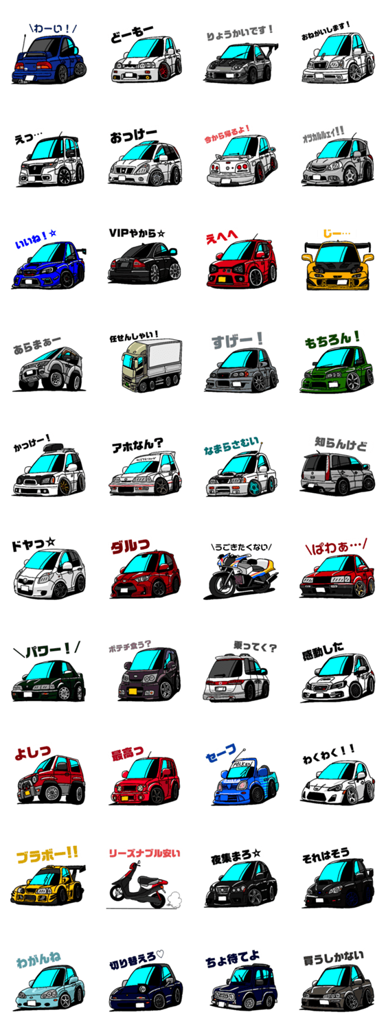第2弾!!ゆるーいかわいい車たちの日常生活で使いやすいようなスタンプです!