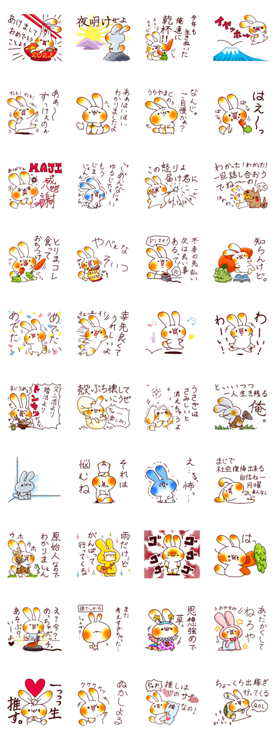 ほっぺがぷにぷにの子ウサギのスタンプです。正月から日常、オタクの推し活まで使えます!